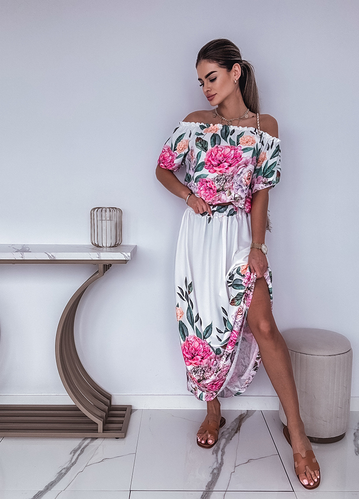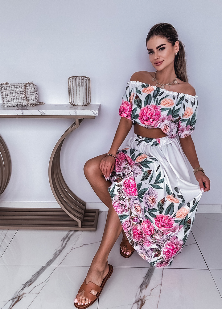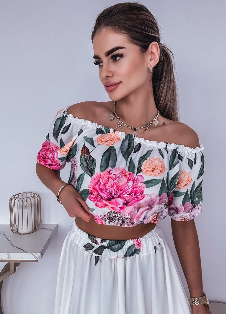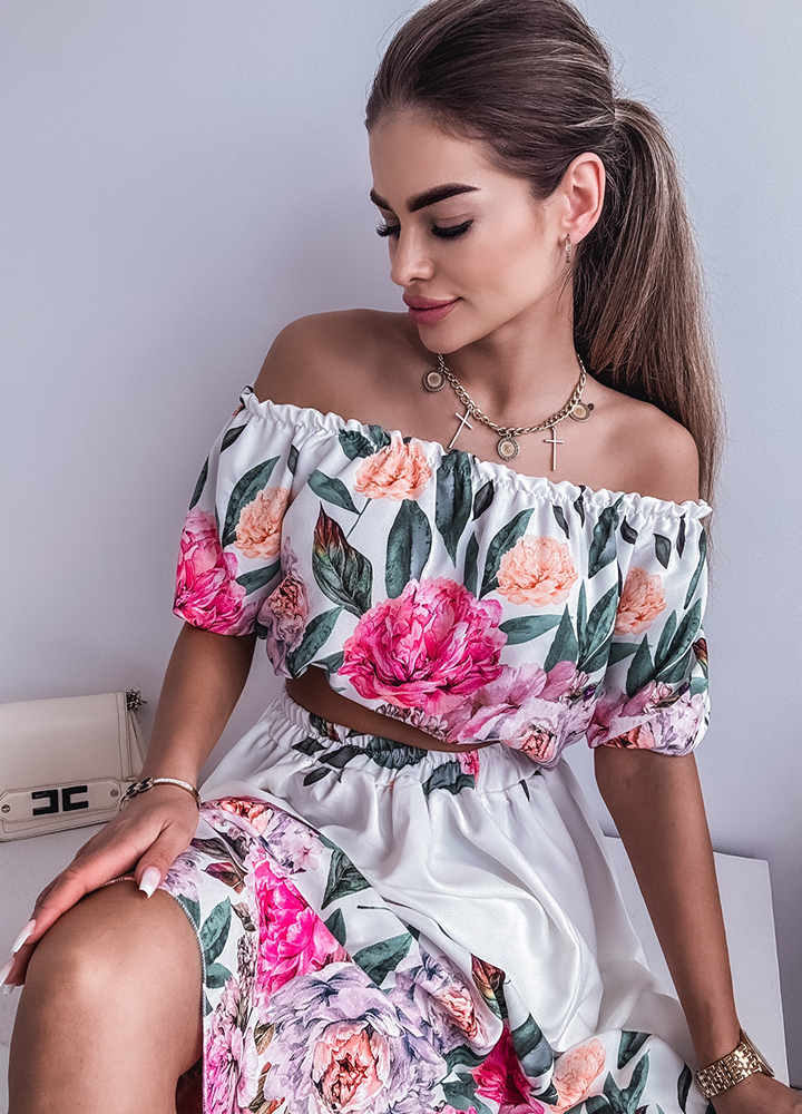 Szczegóły: Wiskozowy komplet / bluzka hiszpanka + spódnica