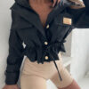 *Wzór: Kurtka żakietowa z ekoskóry zapinana na złote guziki, wykończona ściągczem.