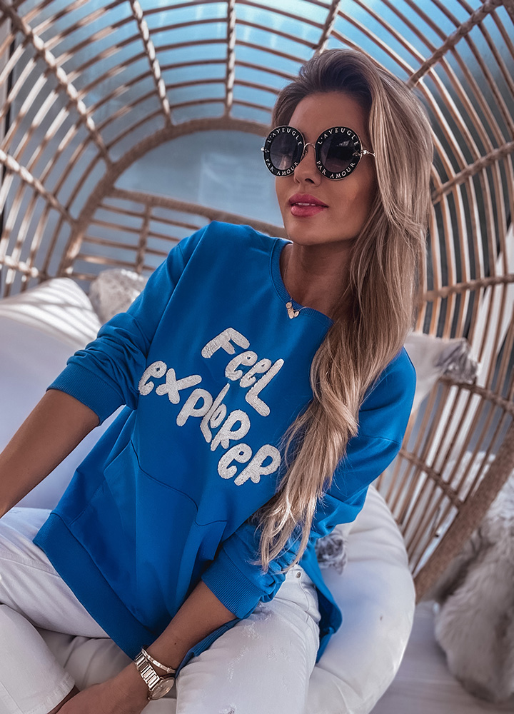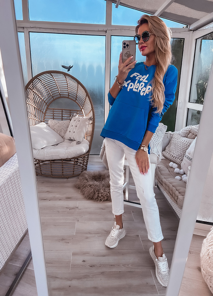 *Wzór: Bawełniana bluza z aplikacją. Kolor chaber.