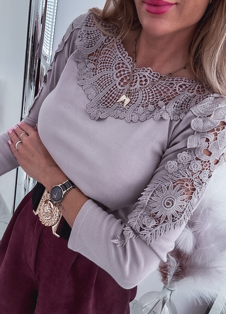 *Wzór: bawełniana bluzka zdobiona na dekolcie i rękawach koronką one size