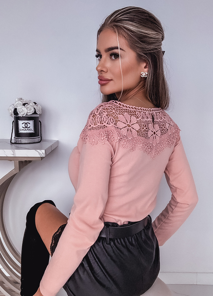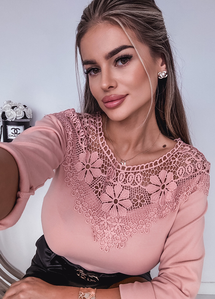 *Wzór: bluzka pudrowy róż z efektownym dekoltem i tyłem