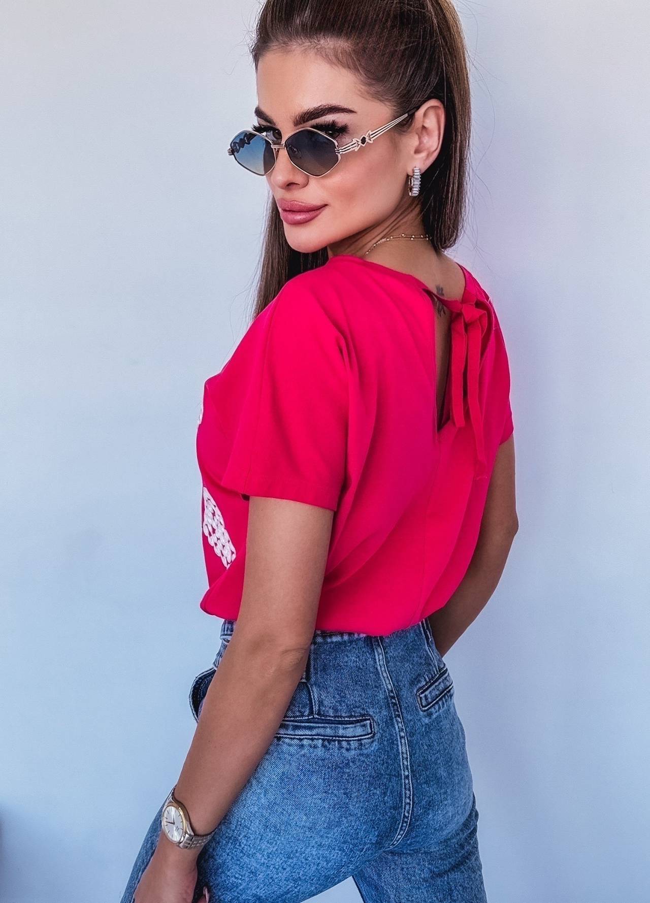 *Wzór: Bawełniana bluzka z wiązaniem na plecach.