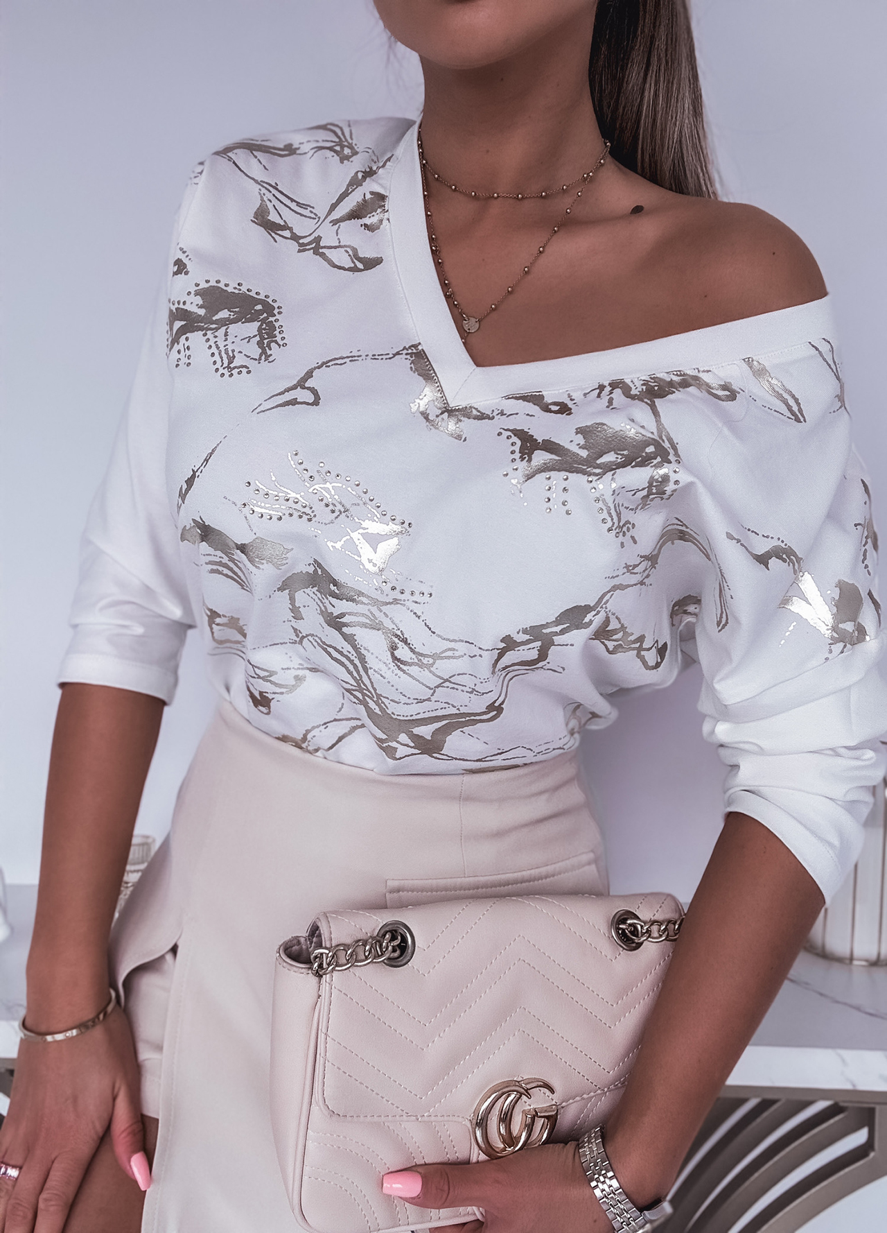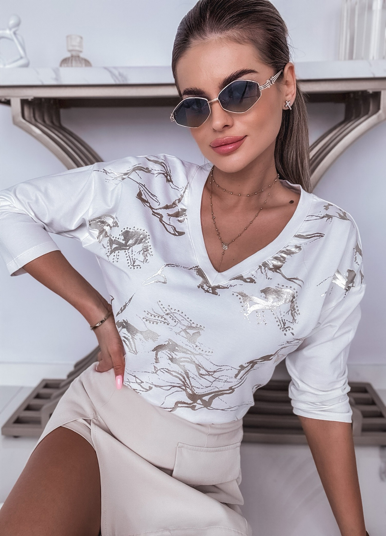 *Wzór: Bawełniana bluzka ze złotym nadrukiem.