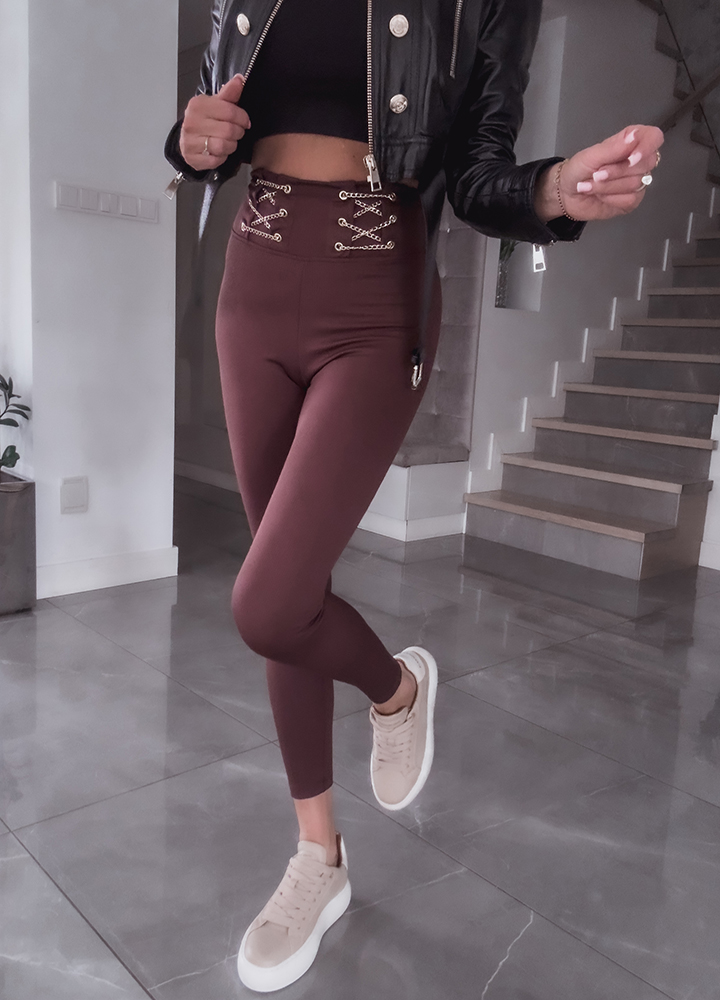 BAWEŁNIANE LEGGISNY ZŁOTE ŁAŃCUSZKI BROWN