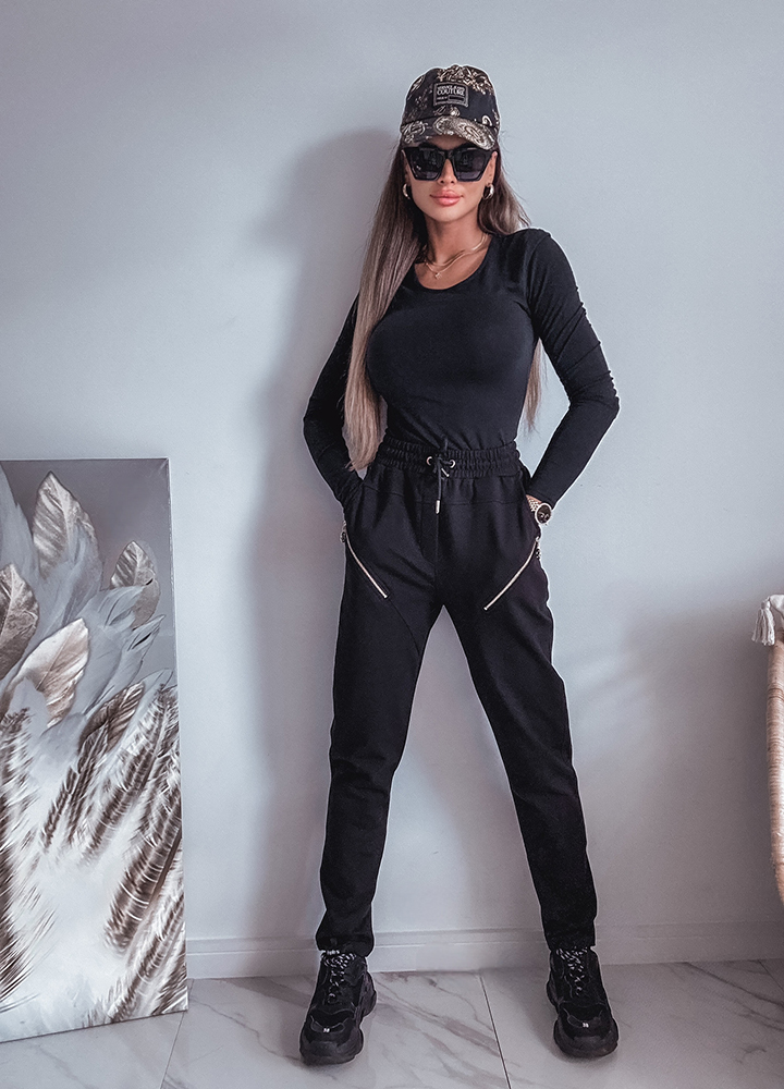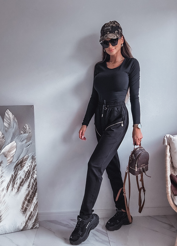 BAWEŁNIANE SPODNIE DRESOWE Z ZAMKAMI BLACK