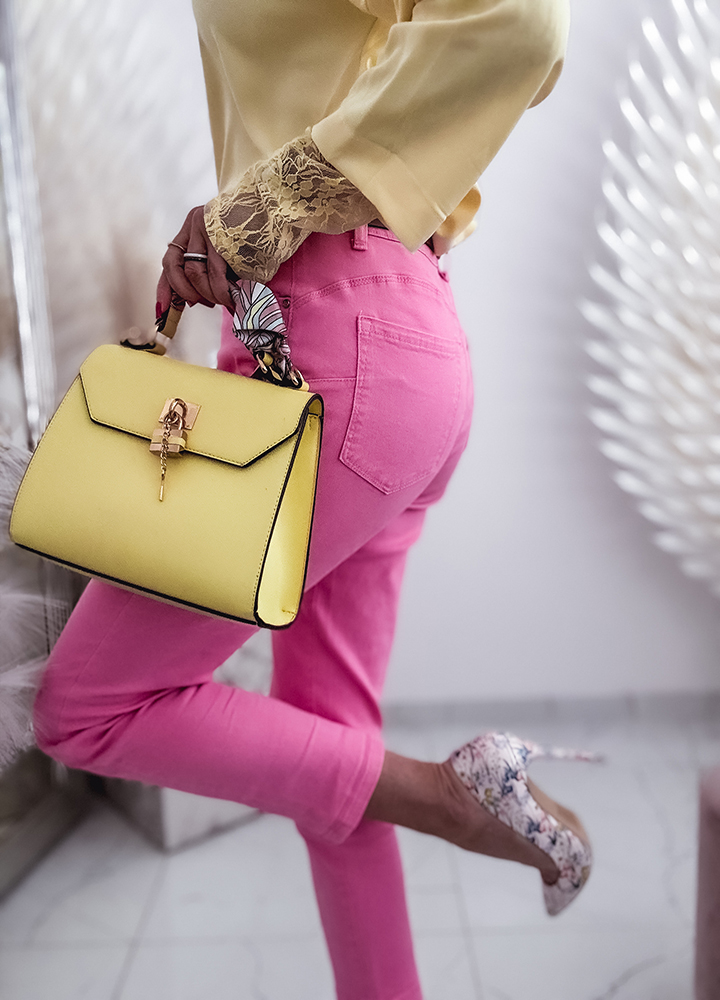 * Szczegóły: spodnie jeansowe z wysokim stanem + pasek