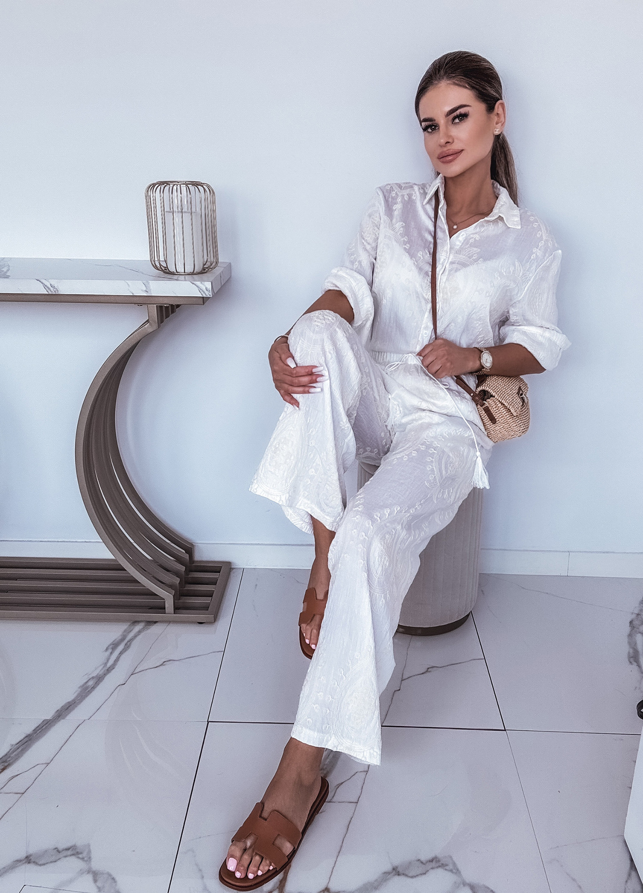 *Szczegóły: Bawełniany komplet letni z haftem.