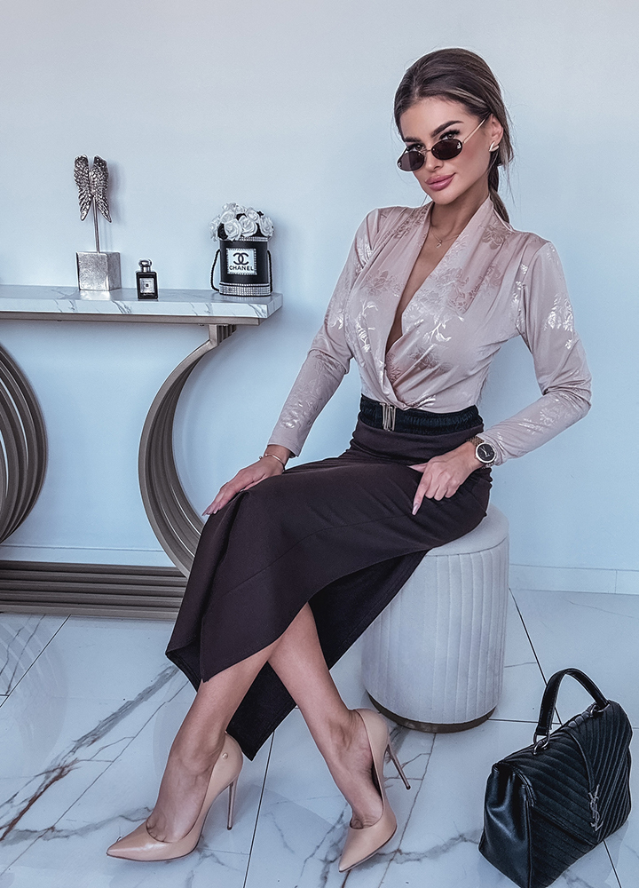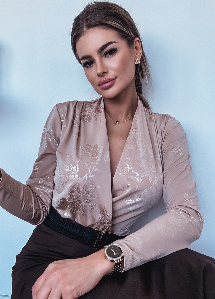 *Wzór: wieczorowe body z nadrukiem w kwiaty.