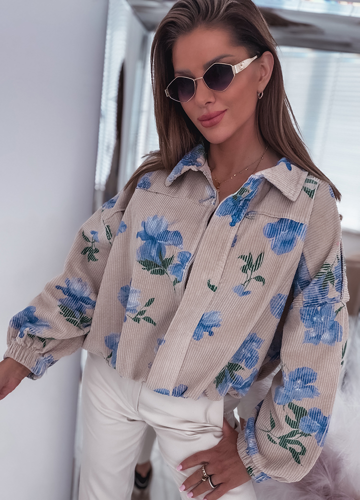 *Wzór: kurtka przejściowa sztruksowa zapinana na zamek z kwiatami