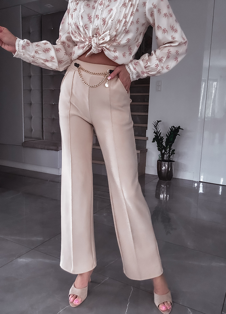 *Szczegóły: spodnie z szeroką nogawką w kant