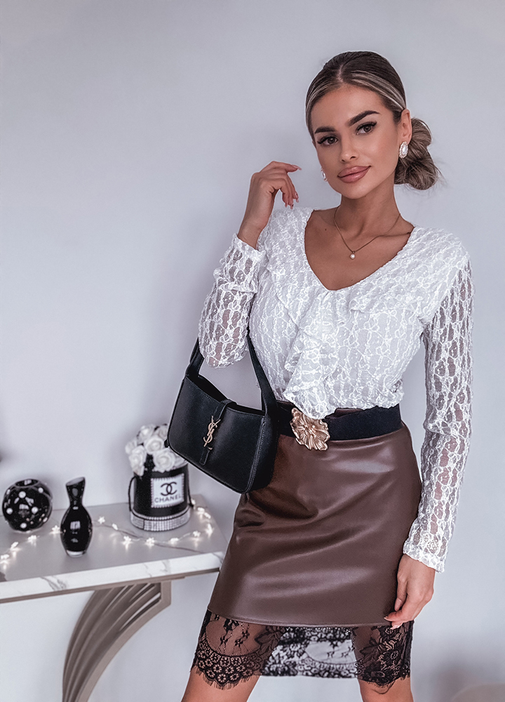 *Wzór: wieczorowe body w koronkę z żabotem.