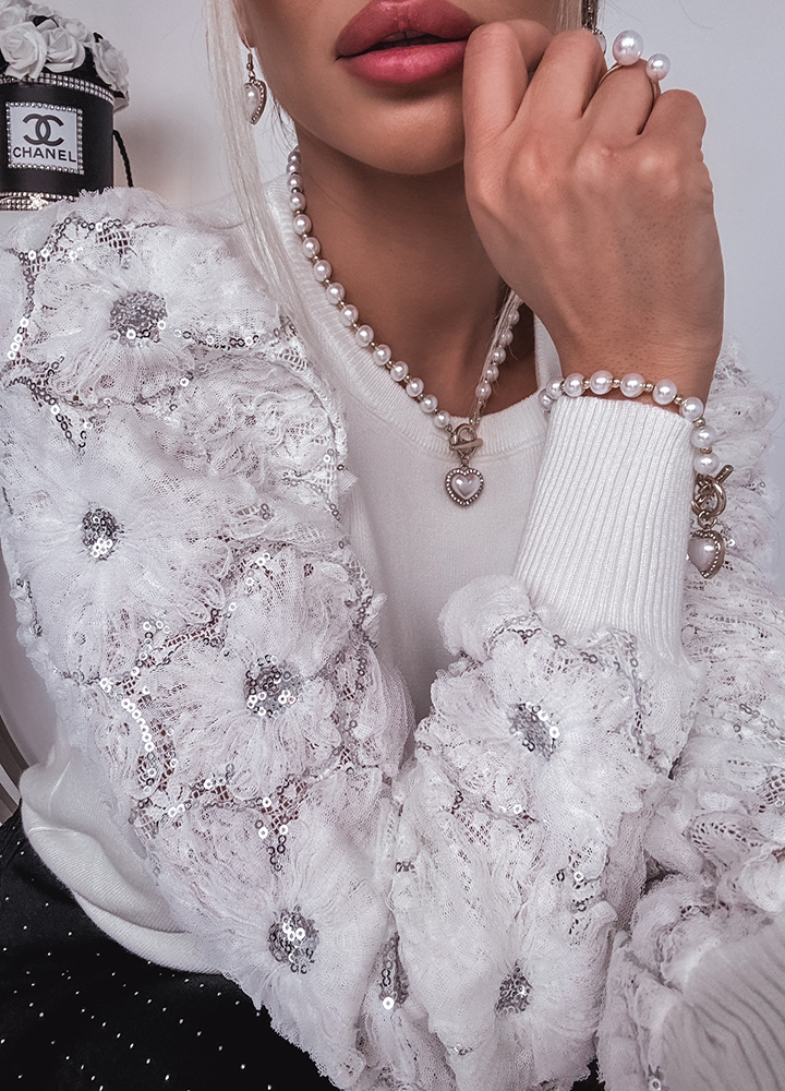 *Wzór: sweter one size zdobiony kwiatami na rękawach