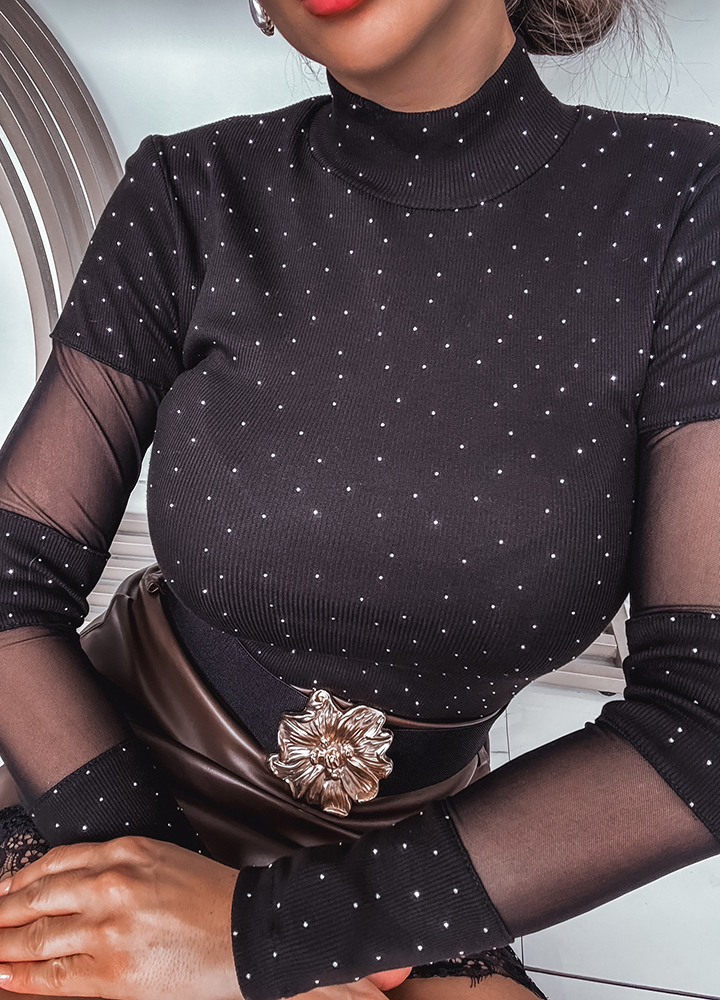 *Wzór: czarna bluzka w cekiny z dodatkiem siateczki na rękawach