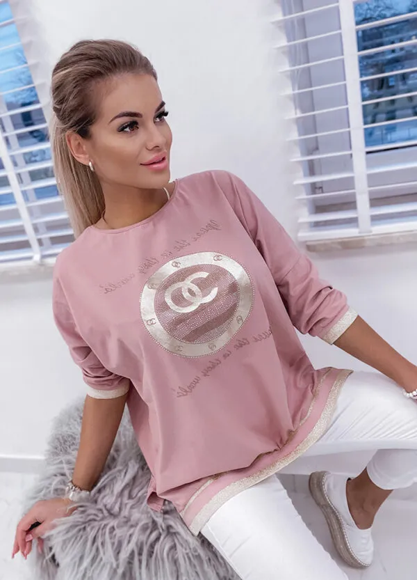*Wzór: bluzka ze złotą aplikacją zdobiona cekinami. Mankiety wykończone złotym lampasem.