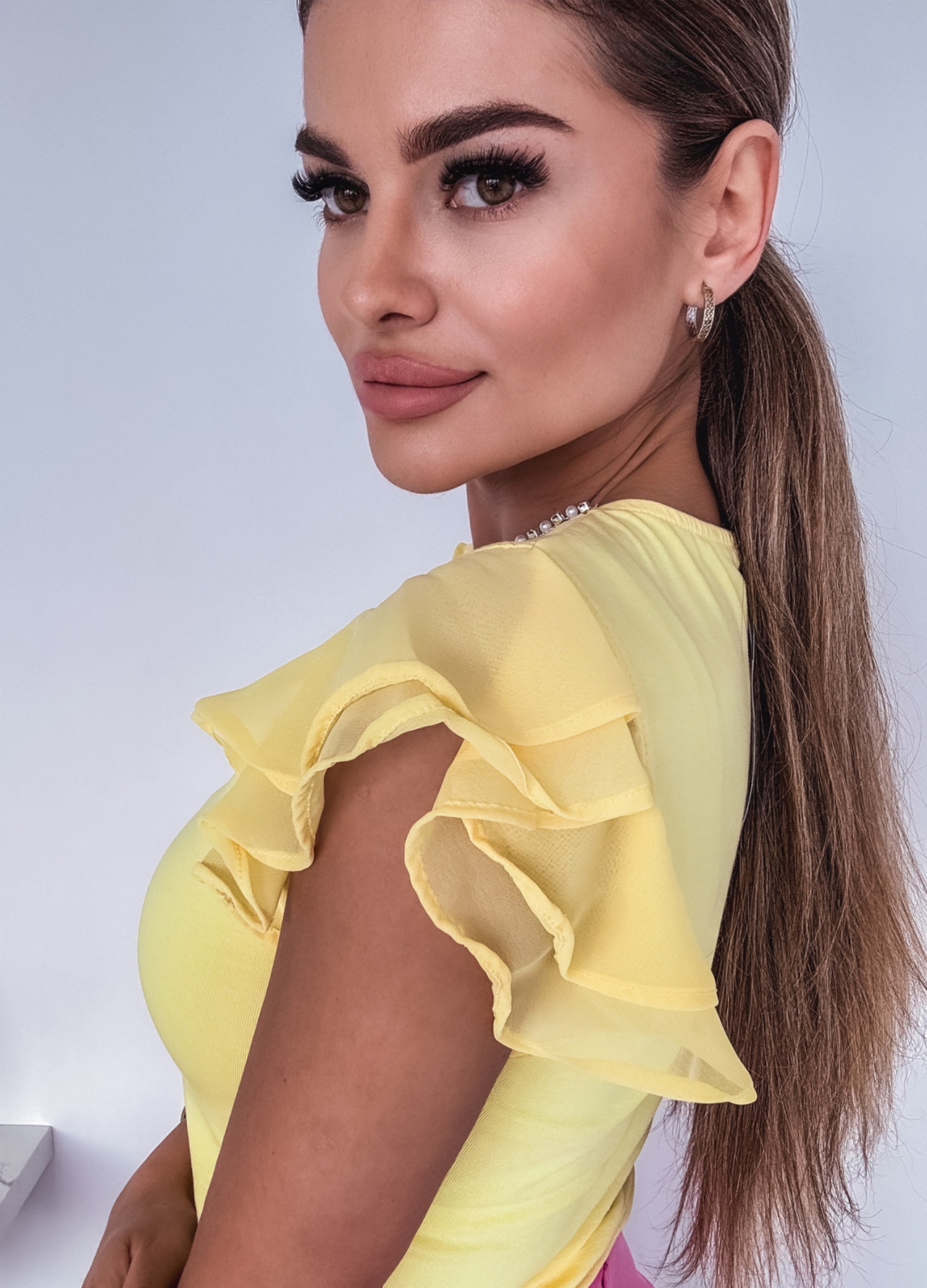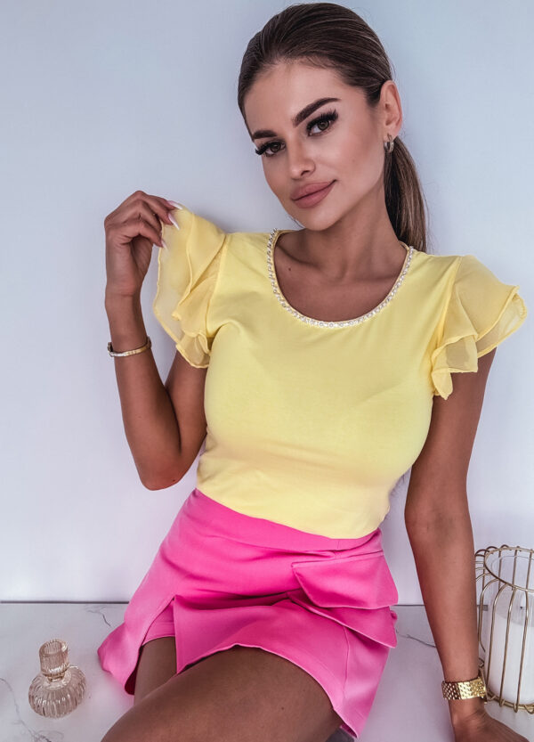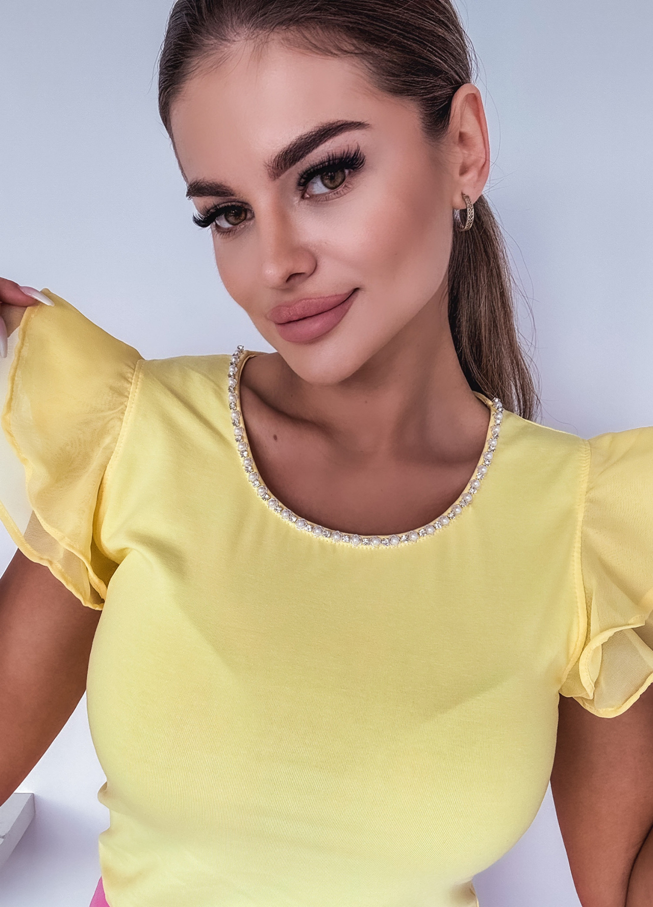 *Wzór: bawełniana bluzka z perłami przy dekolcie.