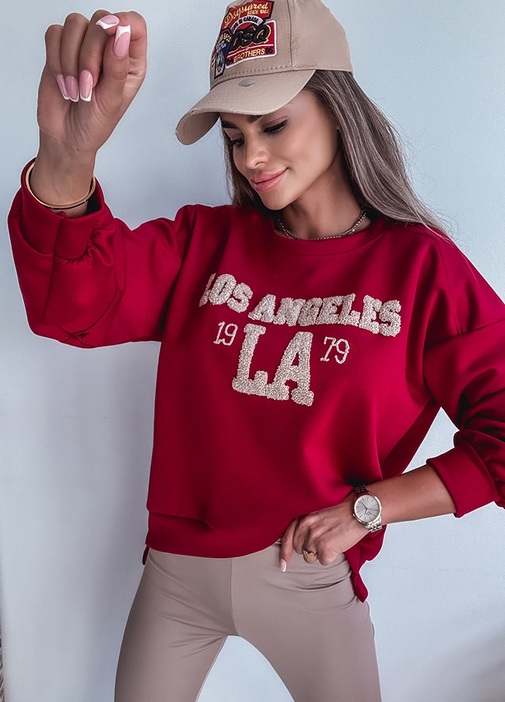 *Wzór: bordowa bluza z wytłaczanym napisem
