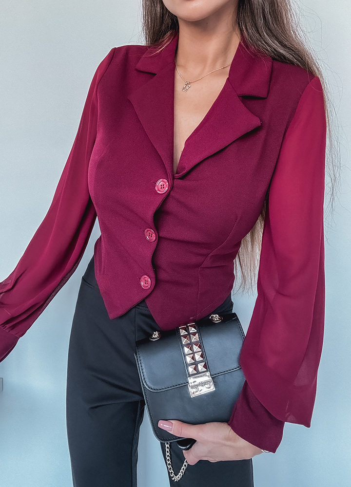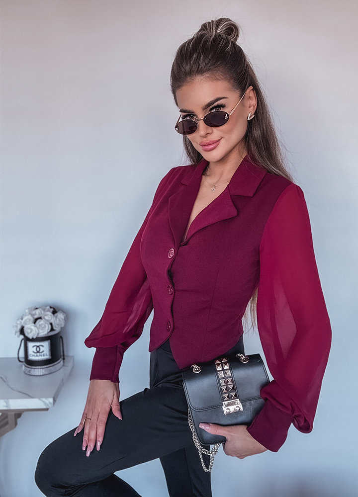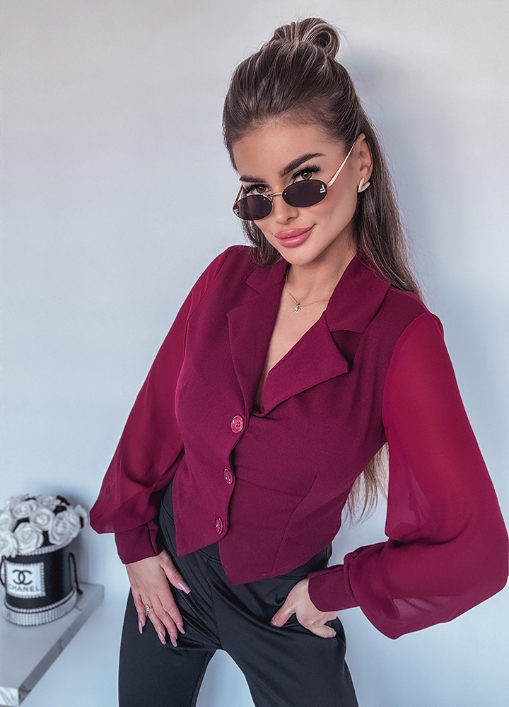 *Wzór: bluzka zapinana na guziki z tiulowymi rękawami