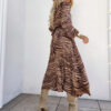 *Wzór: Sukienka midi z kopertowym dekoltem, wiązana w pasie z głębokim rozporkiem.