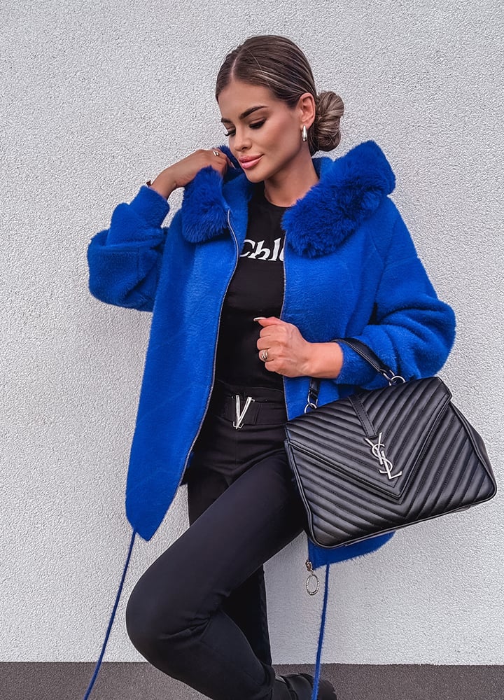 *Wzór: Alpaka z kapturem , kurtka zapinana na zamek , uszyta z miękkiego materiału z dodatkiem wełny i angory, rozmiar one size