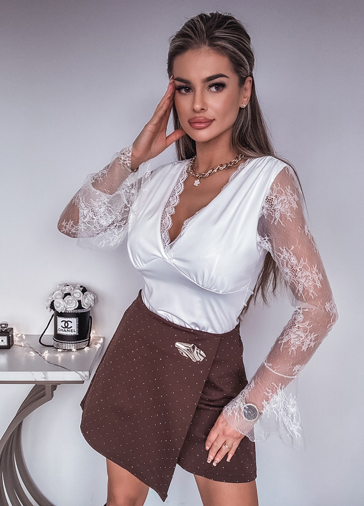 *Wzór: spódniczko spodenki z cekinami i broszką