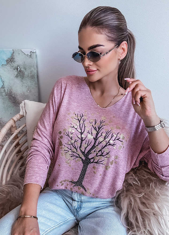 *Wzór: sweterek z aplikacją dekolt w szpic