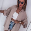 *Wzór: Długa koszula w kolorze beżowym z brokatowym nadrukiem na plecach
