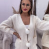 *Wzór: Dłuższy sweter w kolorze kremowym, zapinany na guziki