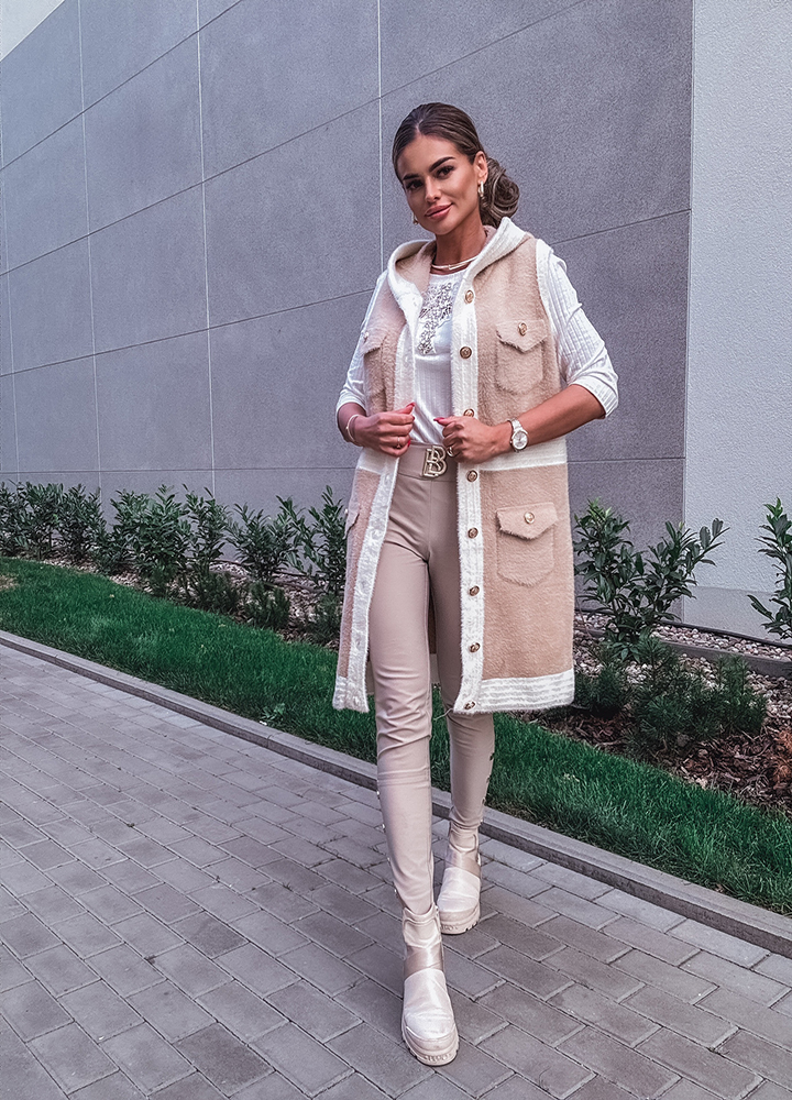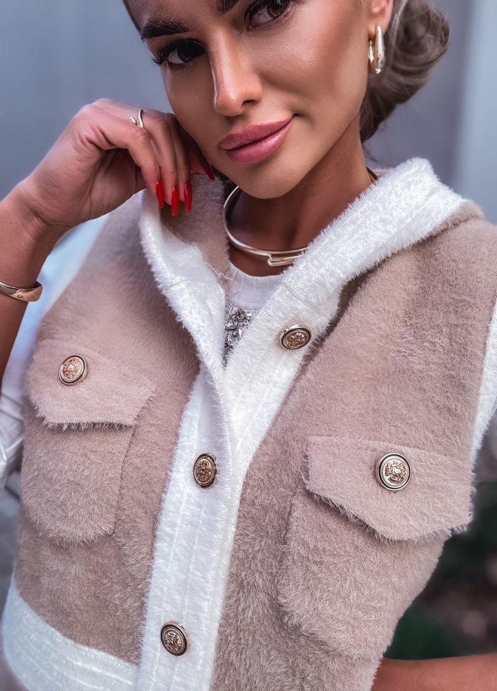 *Wzór: kamizelka zapinana na guziki alpaka uszyta z miękkiego materiału z dodatkiem wełny i angory wytłaczany grecki , rozmiar one size