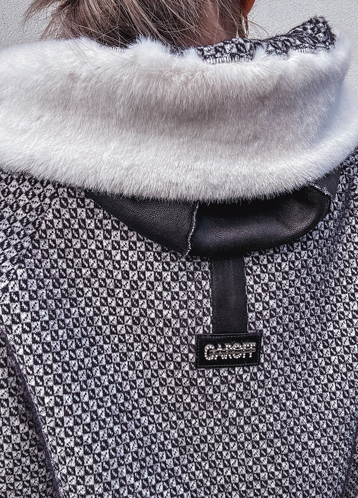 *Wzór: Kurtka z kapturem ozdobionym białym futerkiem