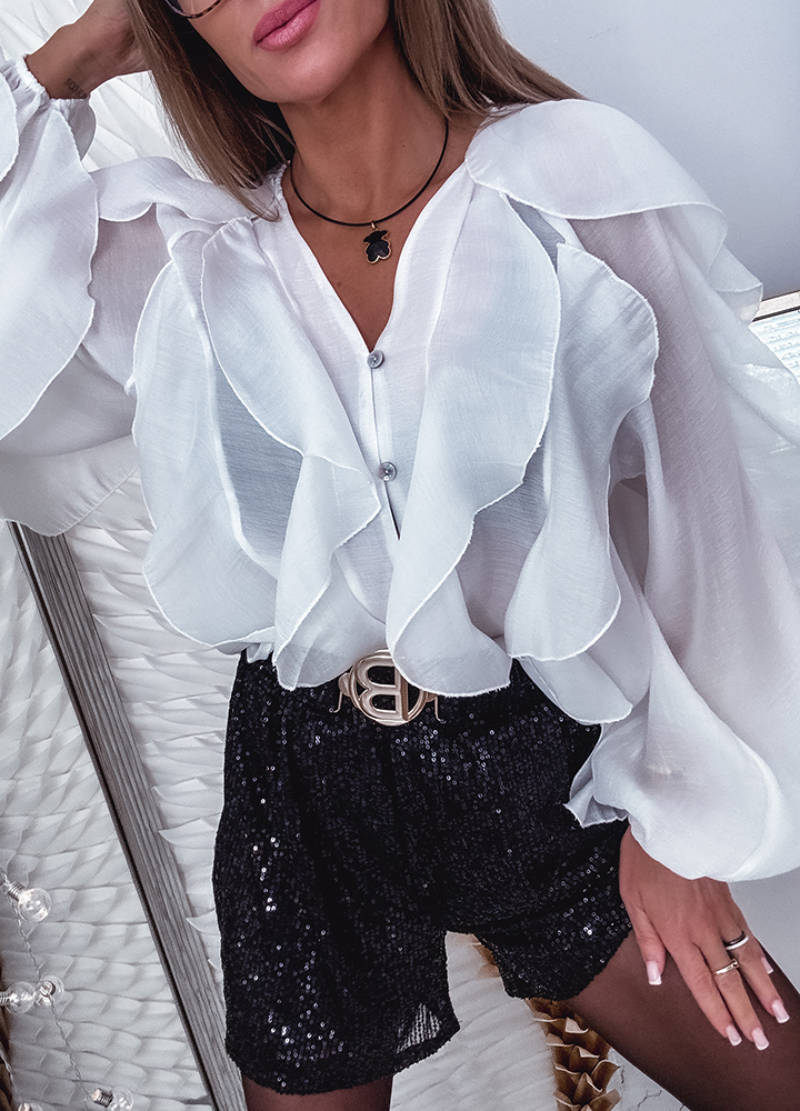 *Wzór: koszula bluzka z falbanami zapinana na guziki