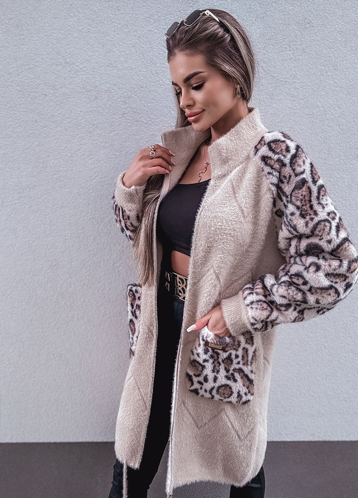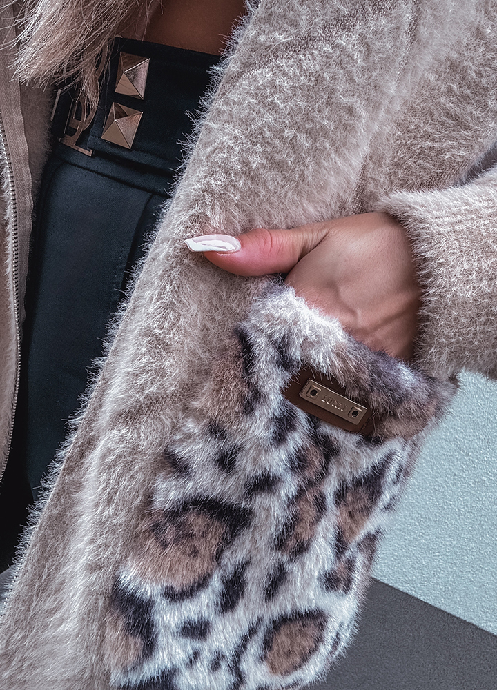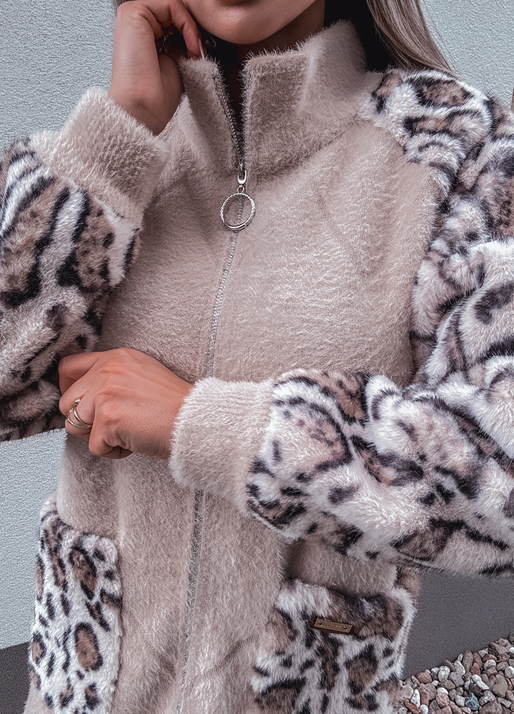 *Wzór: Alpaka beżowa z kapturem , kurtka zapinana na zamek uszyta z miękkiego materiału z dodatkiem wełny i angory, rozmiar one size