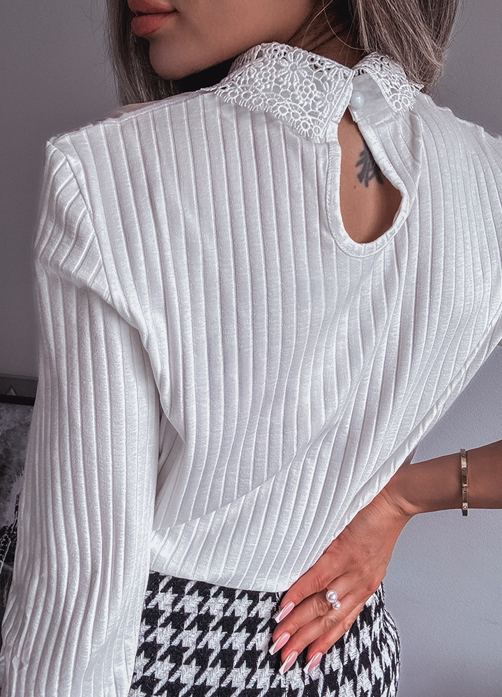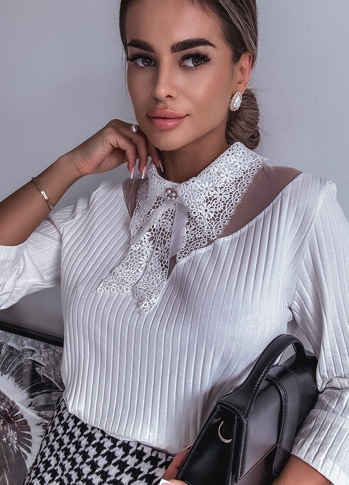 *Wzór: bawełniana bluzka prążkowana z koronkowym kołnierzykiem