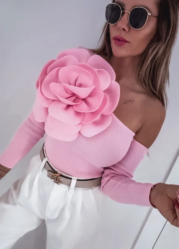 *Wzór: dzianinowa bluzka z ozdobną aplikacją.