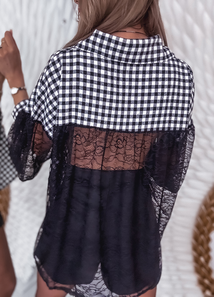 *Wzór: bawełniana koszula z koronkowymi rękawami i broszką