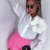 *Wzór: Koszula zdobiona satynowym kwiatem i cekinami.