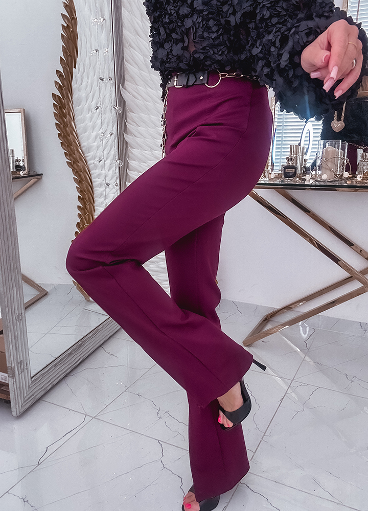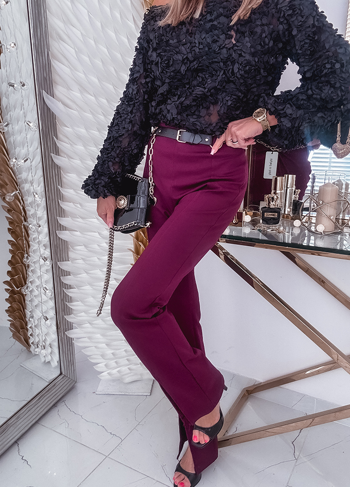 * Szczegóły: spodnie z szeroką nogawką w kant.