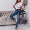* Szczegóły: Jeansowe spodnie o prostym kroju w ciemnym odcieniu jeansu.