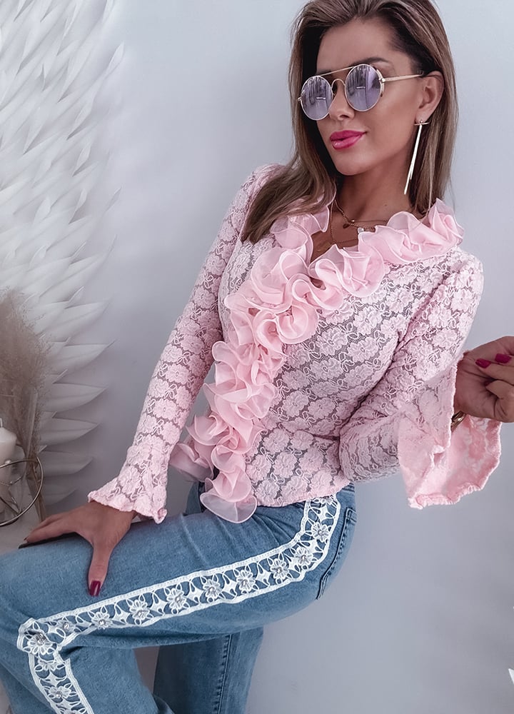 * Szczegóły: spodnie jeansowe z wysokim stanem z koronką