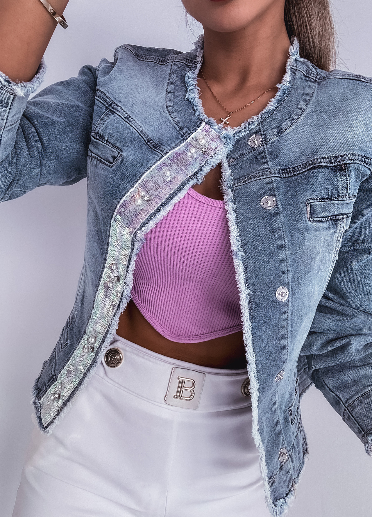 *Wzór: Katana jeansowa zdobiona cekinami.