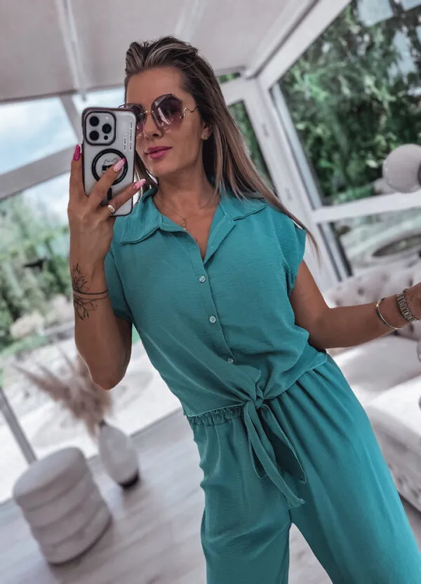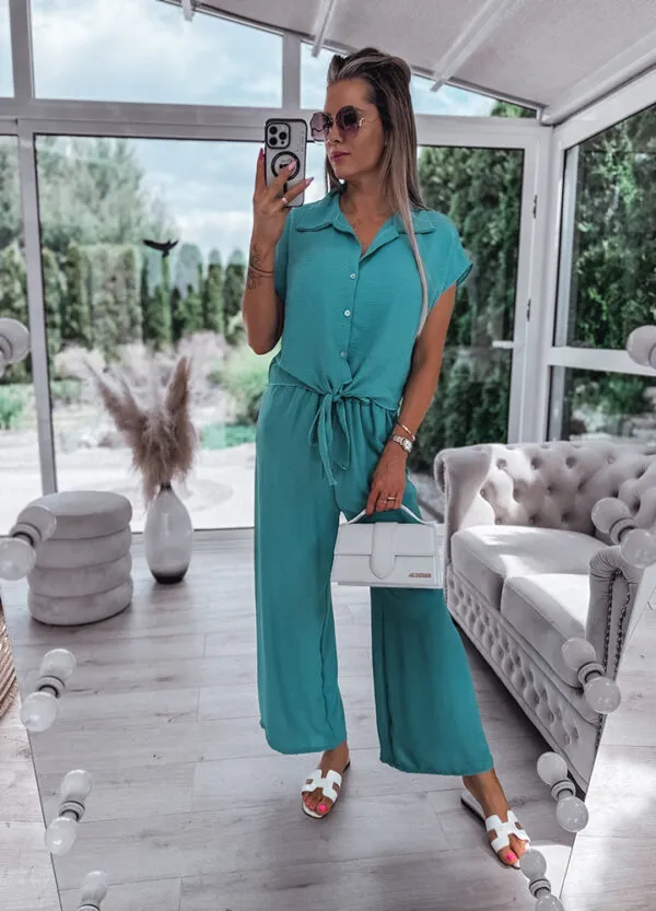 *Wzór: Komplet letni : koszula + spodnie z szeroką nogawką we wzory.