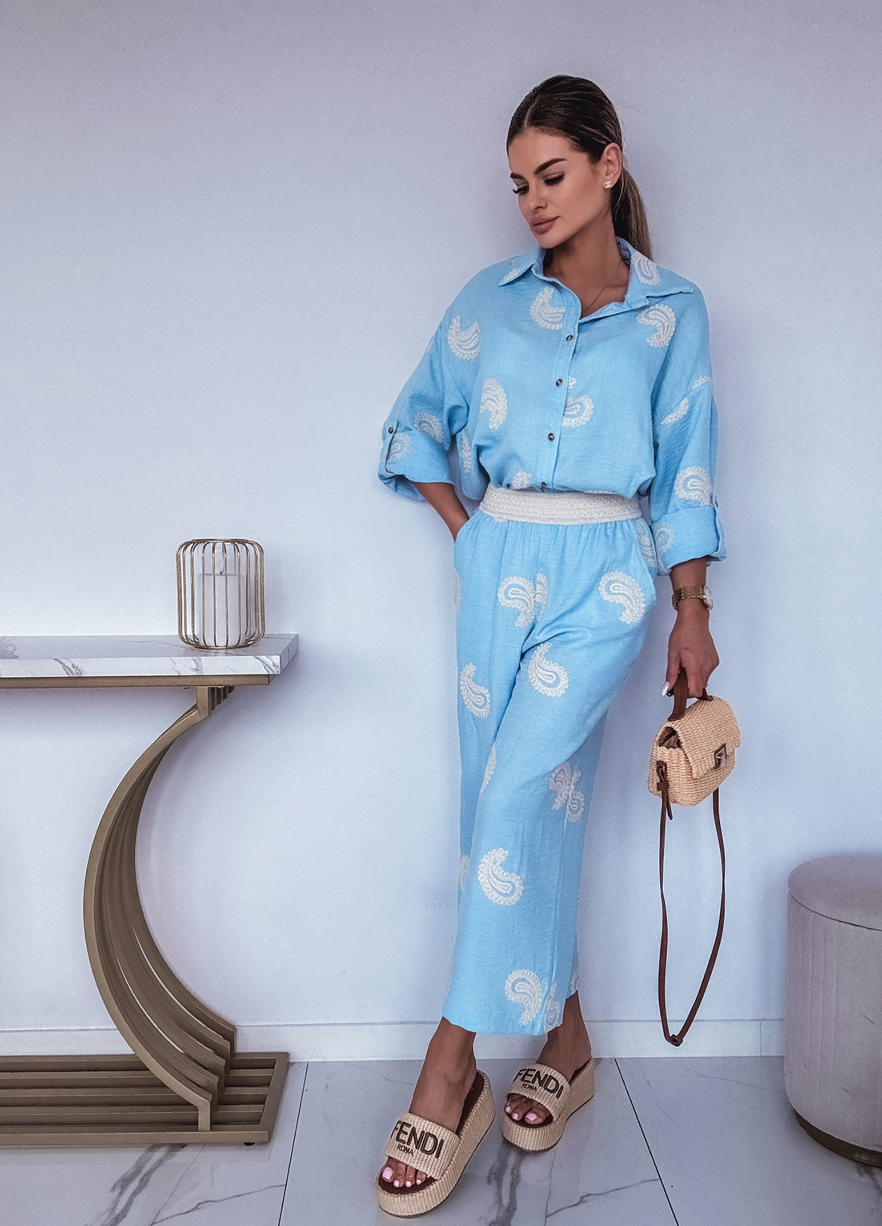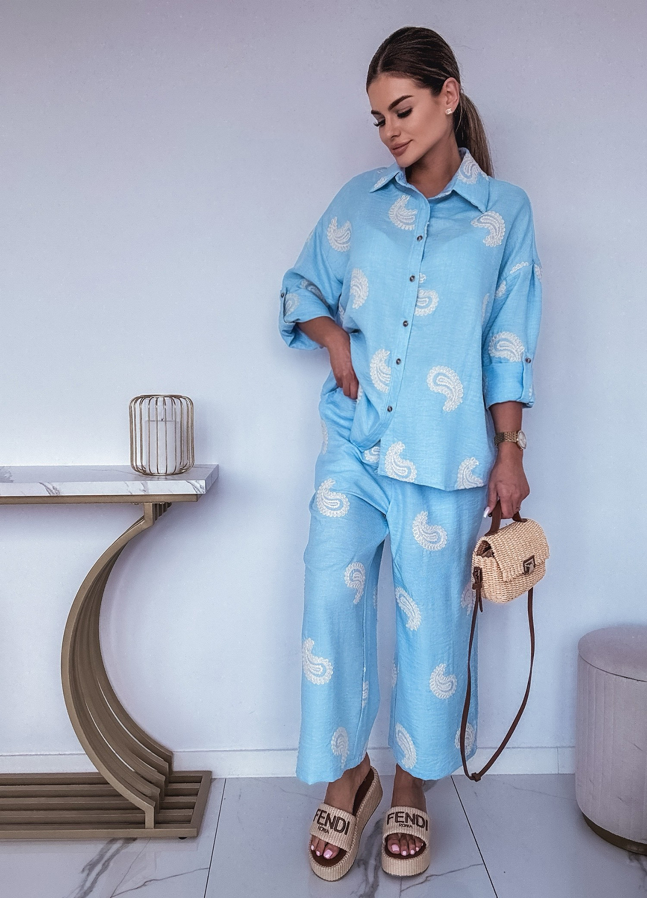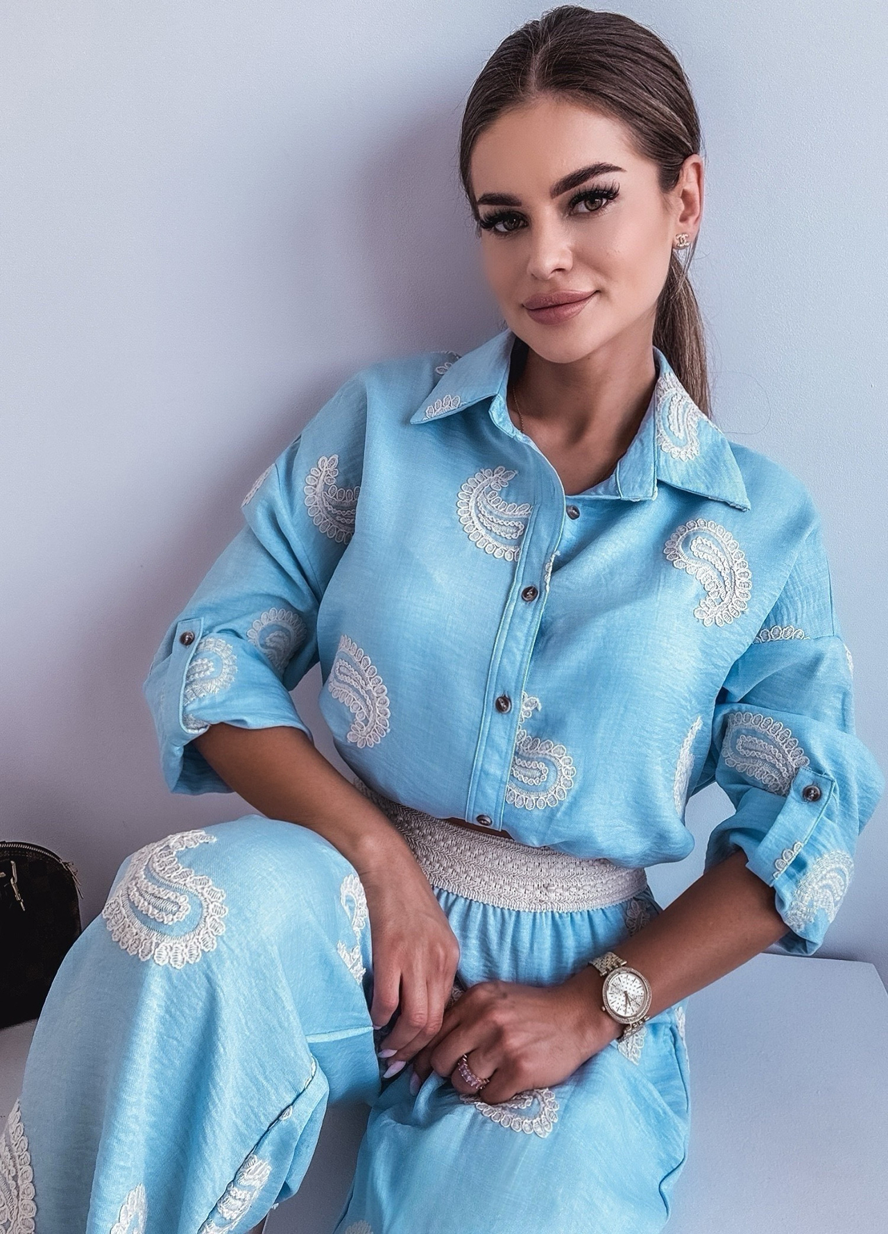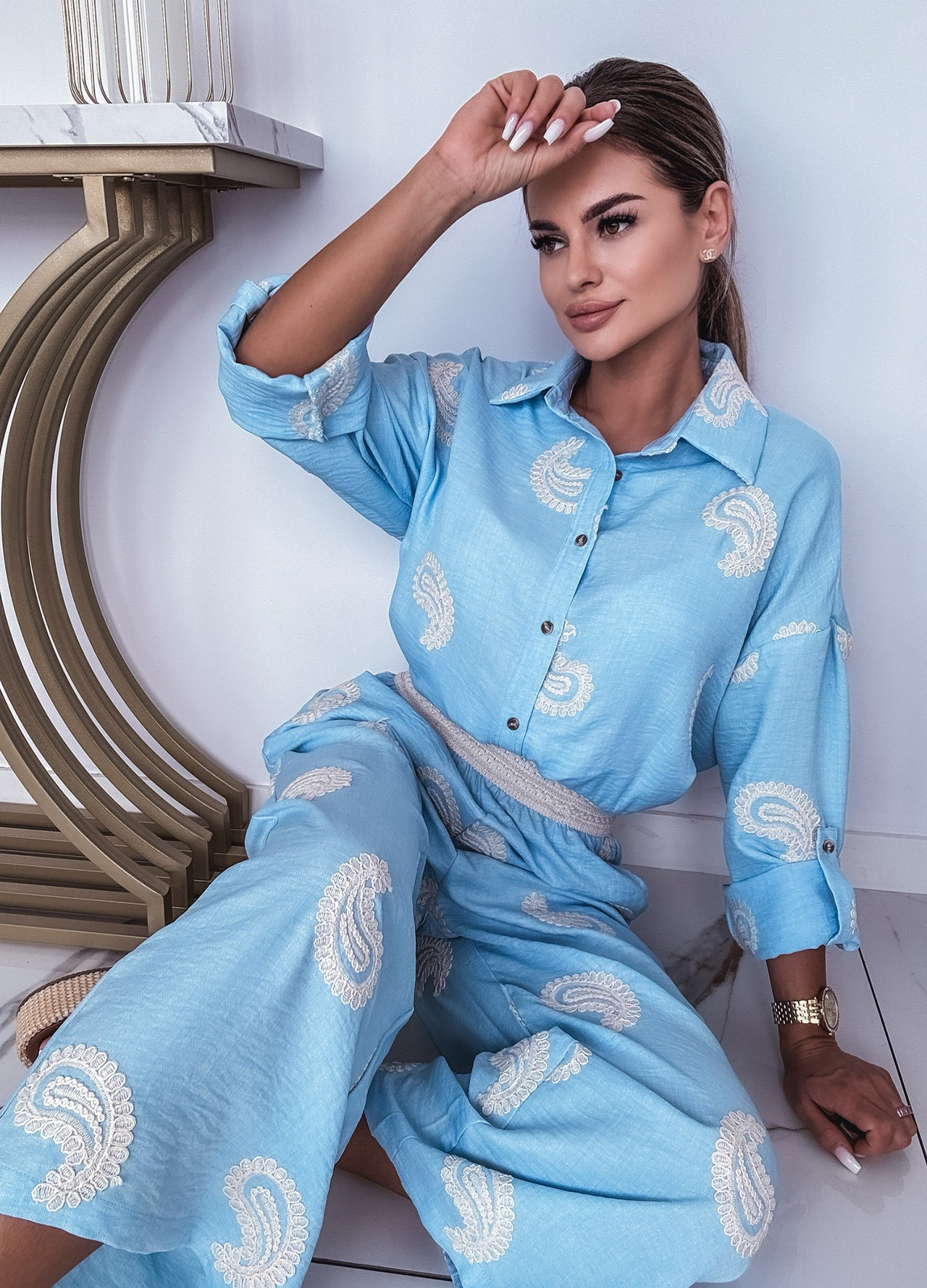 *Szczegóły: Komplet letni / koszula + spodnie z szeroką nogawką i haftem.