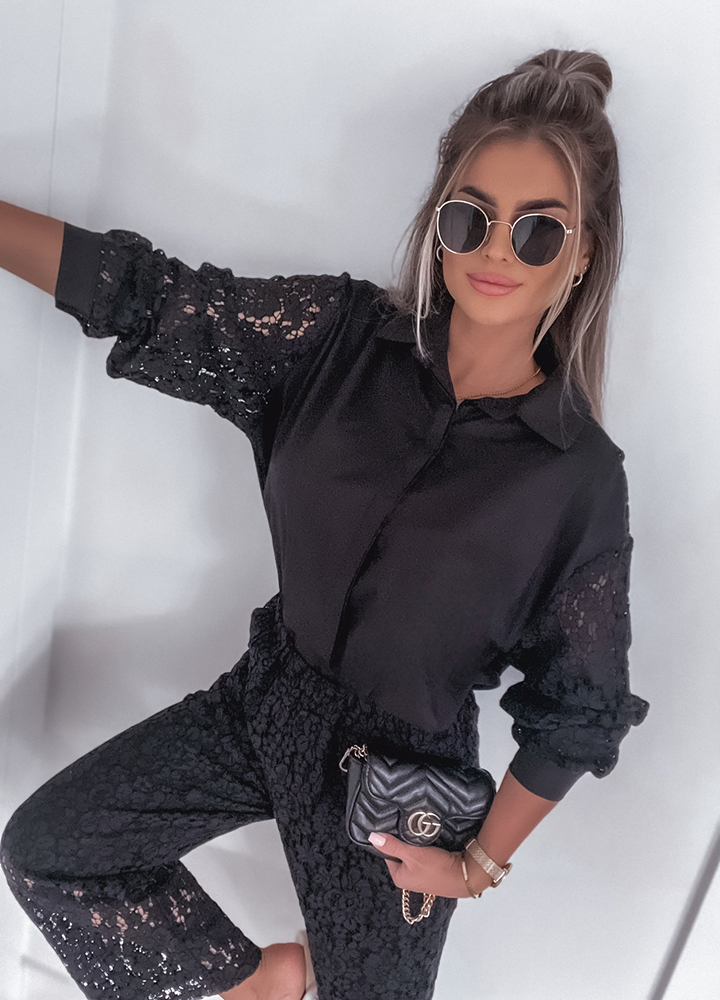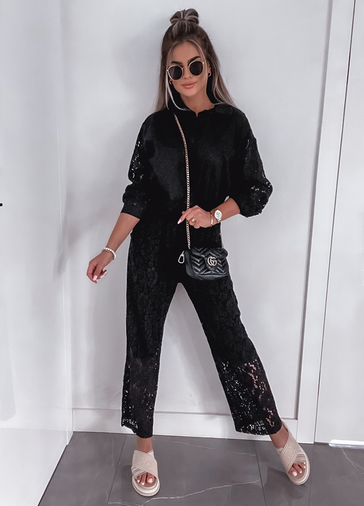 *Szczegóły: Komplet letni, plażowy. Koszula zapinana na guziki + koronkowe spodnie z prostą nogawką.