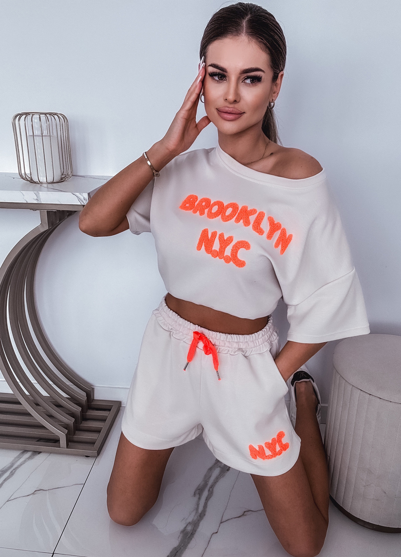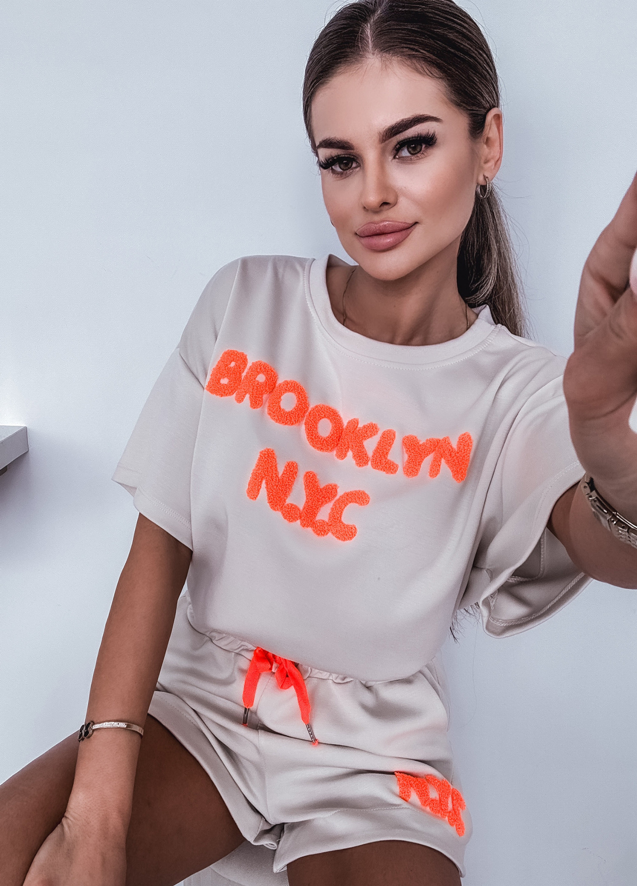 *Szczegóły: Letni komplet / szorty + bluza z aplikacją.