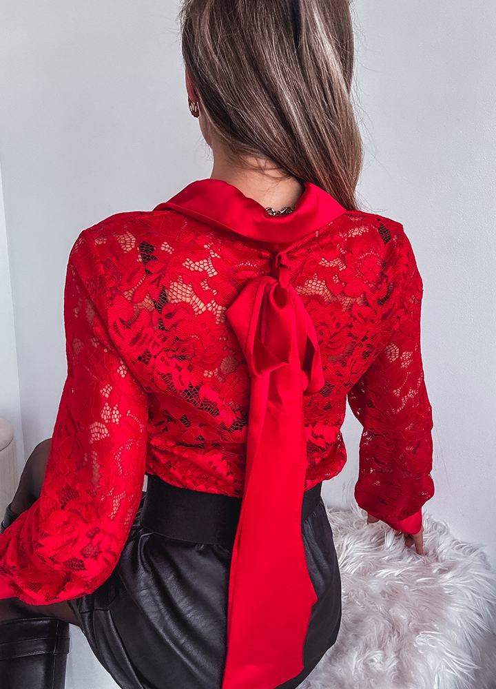*Wzór: czerwona koszula w koronkę z wiązaniem z tyłu one size