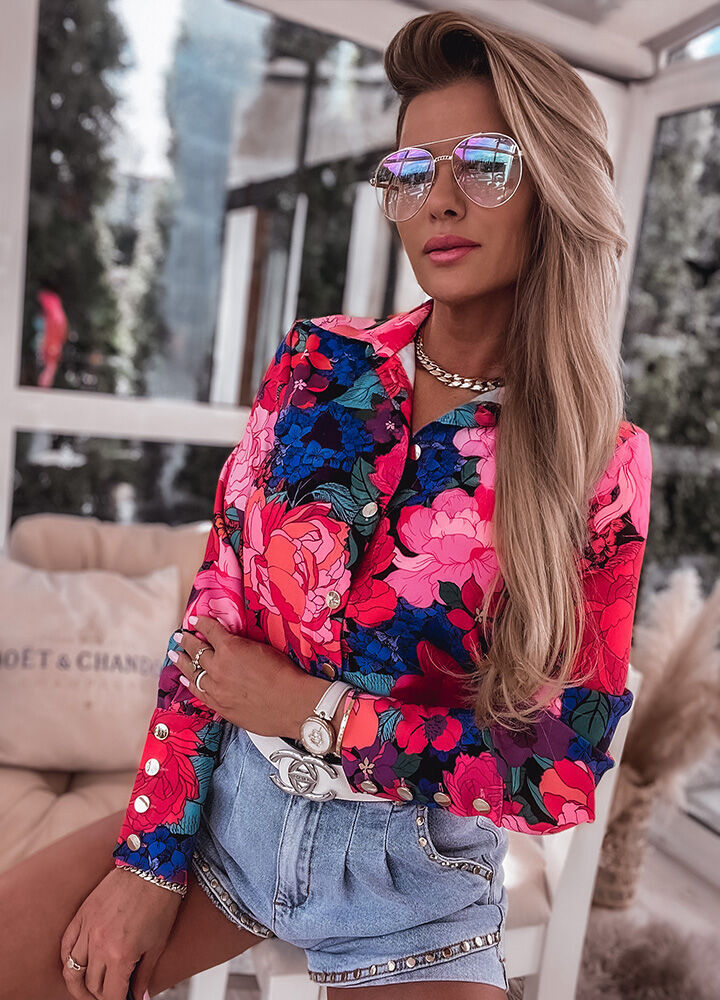 *Wzór: Koszula w kwiaty zapinana na guziki.