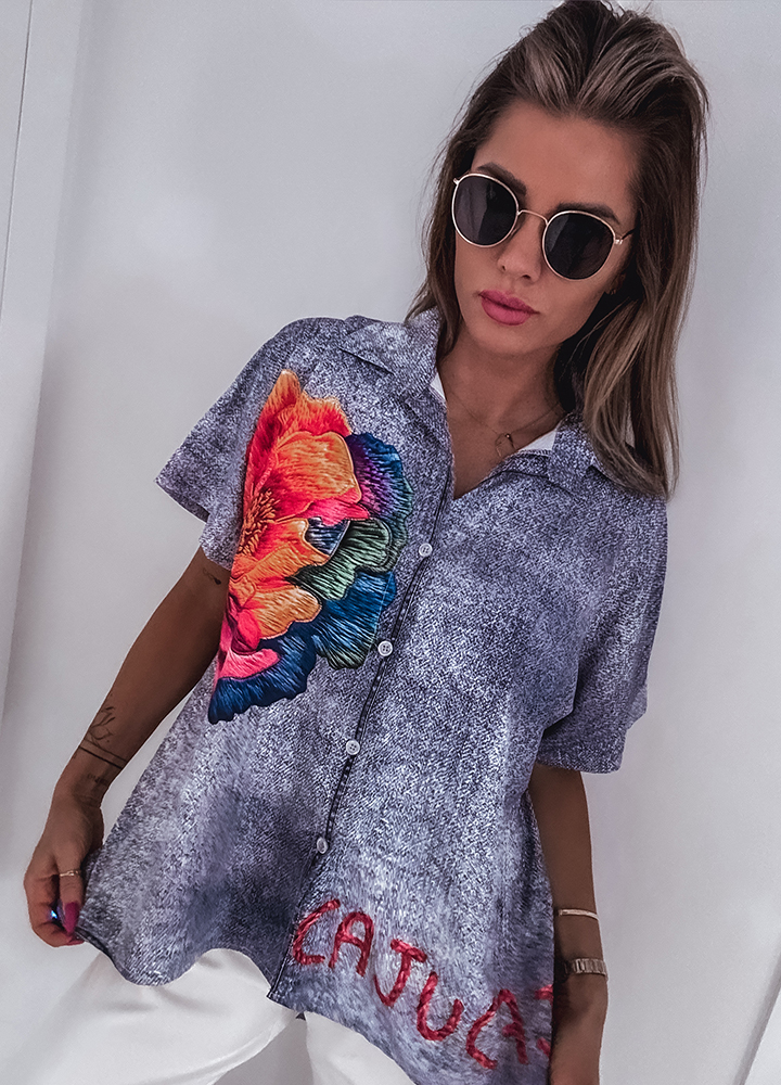 *Wzór: Koszula w print zapinana na guziki.