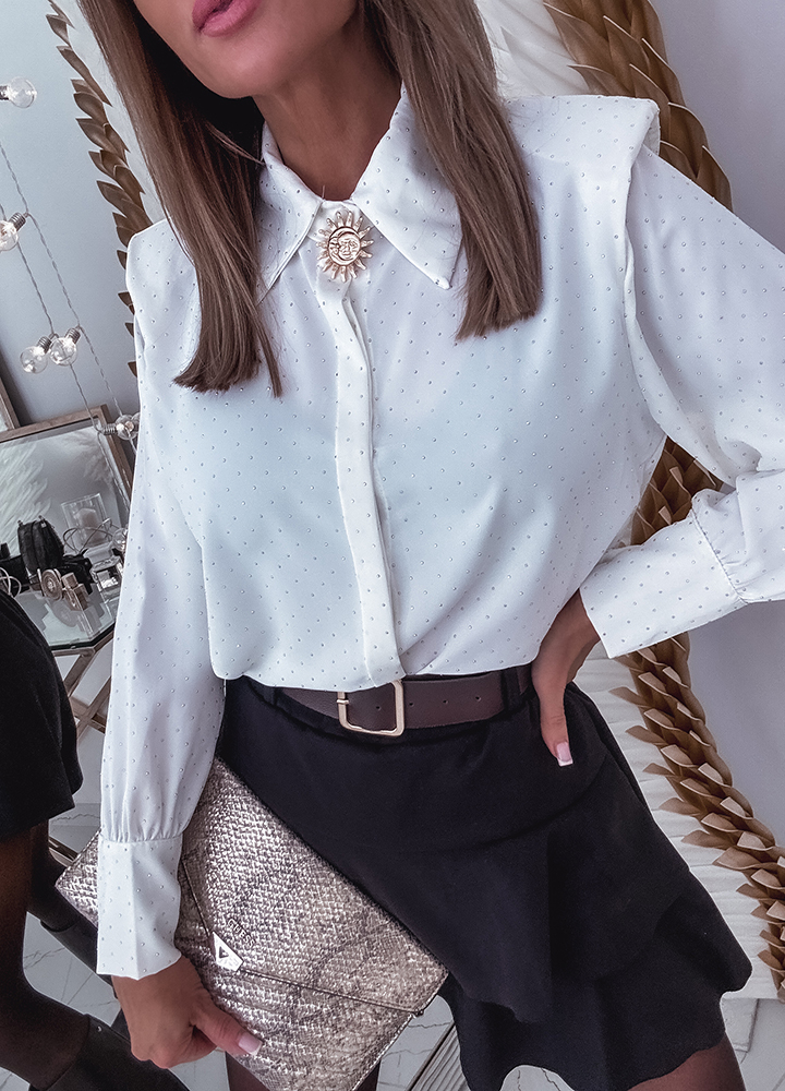 *Wzór: bluzka wizytowa z cekinami i złotą broszką one size