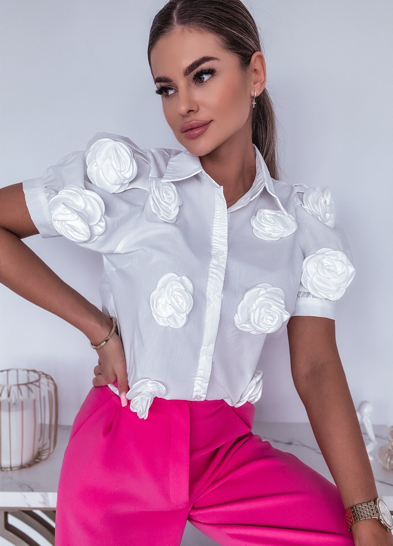 *Wzór: Koszula z krótkim rękawkiem zapinana na guziki.