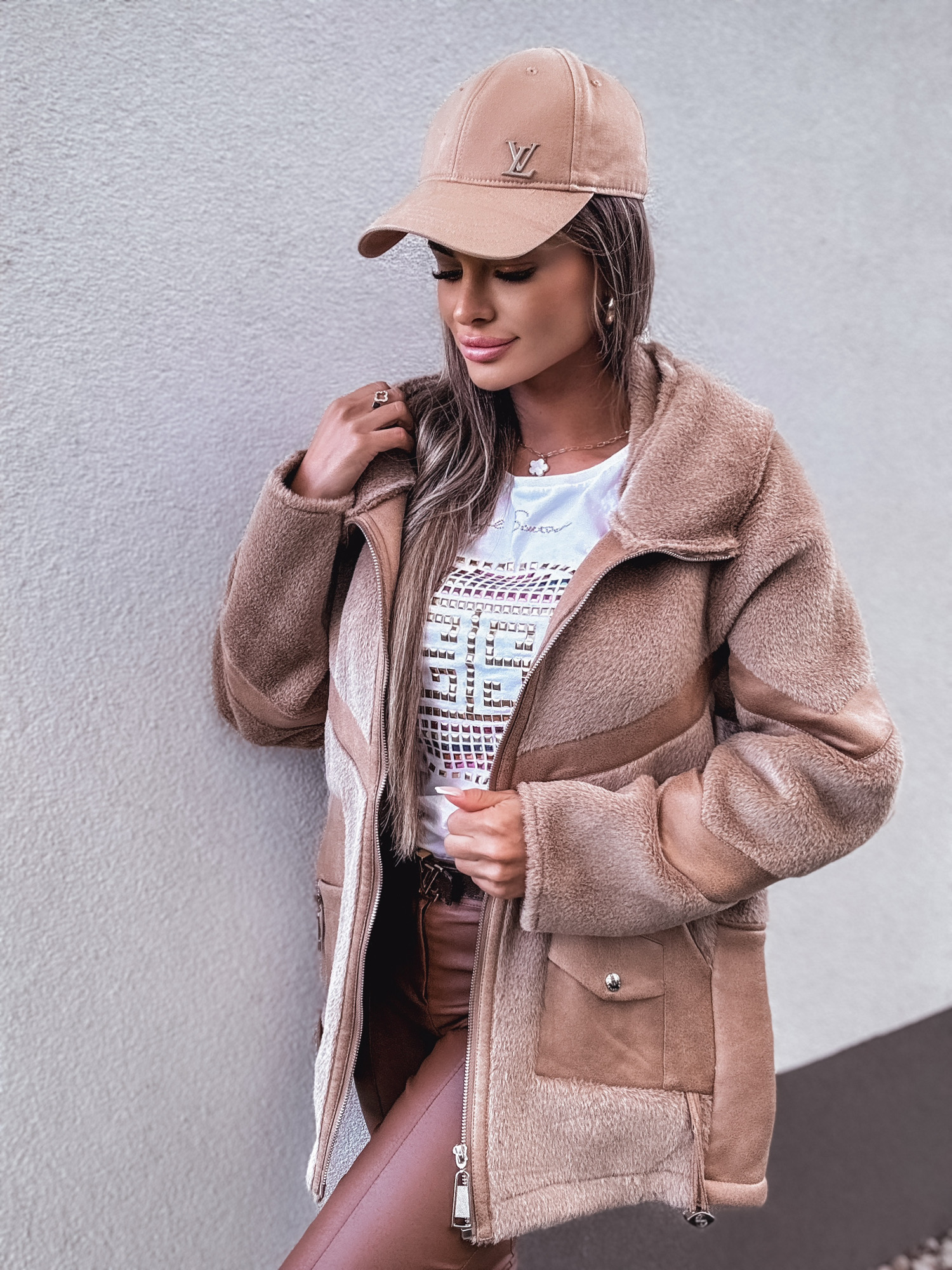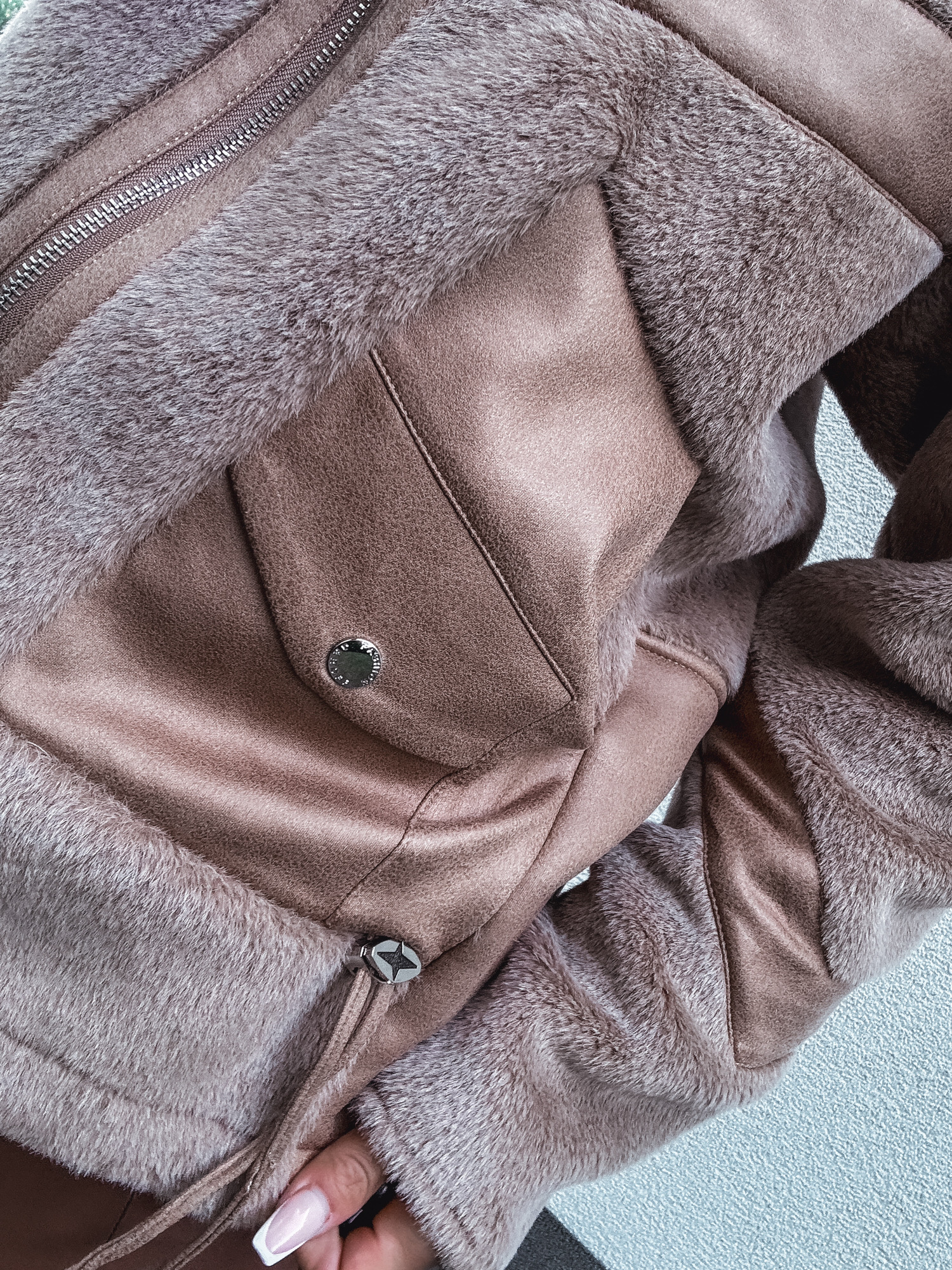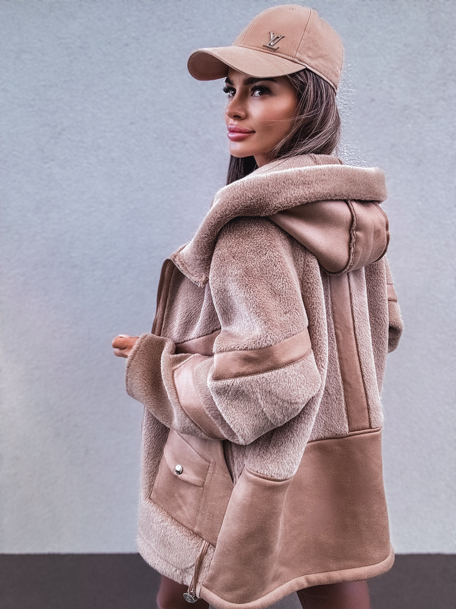 *Wzór: Kurtka kożuszek z kapturem camel