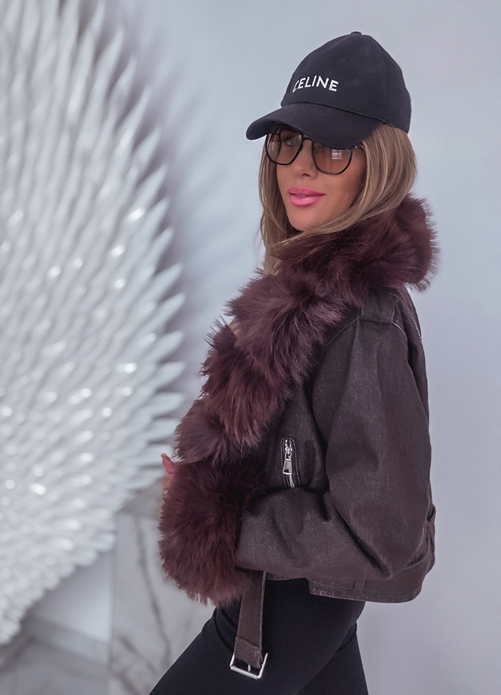*Wzór: Czekoladowa kurtka z futerkiem ociplana